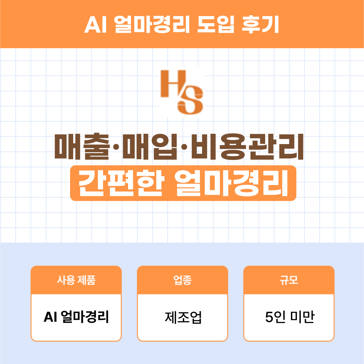 AI 얼마경리 제조업 후기|혼자 회계관리하는 개인사업자, 실제로 업무가 얼마나 달라졌을까요?에이치에스 / 제조업인천광역시 부평구 소재 / 5인 미만AI 얼마경리 이전 사용 프로그램 : 기타 프로그램에이치에스는 제조업 기반 기타 봉제의복 기업으로,기존에 사용하던 회계 프로그램이 업장과 맞지 않아교체 프로그램을 검토하던 중 AI 얼마경리를 알게 되어 도입한 고객입니다.AI 얼마경리 도입 후 빨라진 업무 처리 속도에회계 스트레스가 많이 줄었다고 말씀해 주셨습니다.AI 얼마경리를 사용 중인 고객의 생생한 후기를지금 바로 들려드리겠습니다! 기존 회계프로그램, 소규모 제조업에는 부담이었습니다 개인사업자로 제조업을 운영하면서 혼자 회계관리를 하고 있습니다.기존에 사용하던 회계프로그램이 있긴 하지만,기능 대..