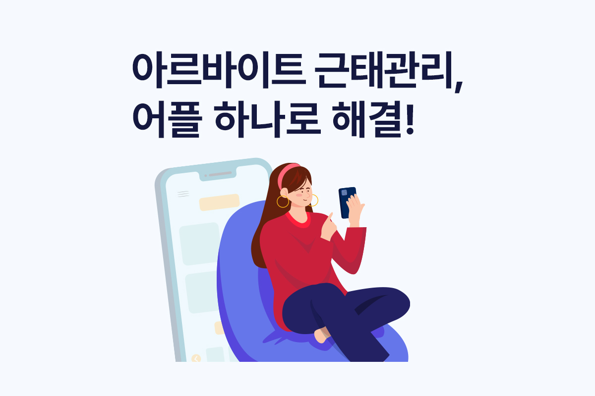 아르바이트 근태관리, 다들 어떻게 하고 계시나요?근무일, 근무 시간 변경이 잦아 번거로운 아르바이트 근태관리. 이에 더해 잦은 지각과, 아르바이트생끼리의 근무일 교체, 연장 근무 등으로 인해 간단해 보이는 근태관리도 생각만큼 쉽지 않습니다. 오늘은 근태, 급여관리를 쉽게 할 수 있게 도와드리는 모바일 근태관리 어플을 소개해 드리려고 합니다. 간편한 근태/급여 관리를 원하셨던 사장님이시라면 오늘 글 꼭 끝까지 읽어보세요! 복잡한 근태/급여관리, 이젠 어플로 하세요.여러 근태/급여관리 솔루션이 나오고 있지만, 아직도 많은 업장에서는 근태/급여 관리를 수기 혹은 엑셀로 관리를 하고 있는데요. 설치해 보니 UI/UX가 불편했다던지, 급여 관리는 이 어플에서, 출퇴근 관리는 또 다른 어플을 설치해서 관리..