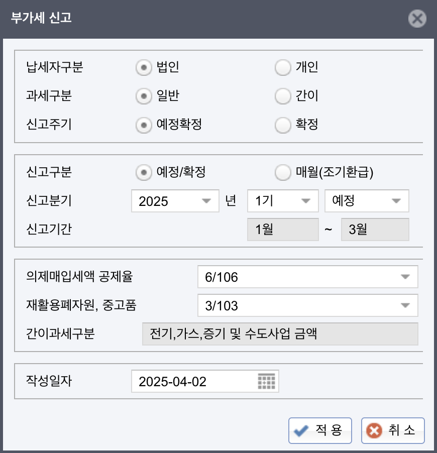 그리고 기업의 거래 내역을 모두 기록하고 있어서 예정신고와 확정신고 기간별로 분류해서 집계해줘요.