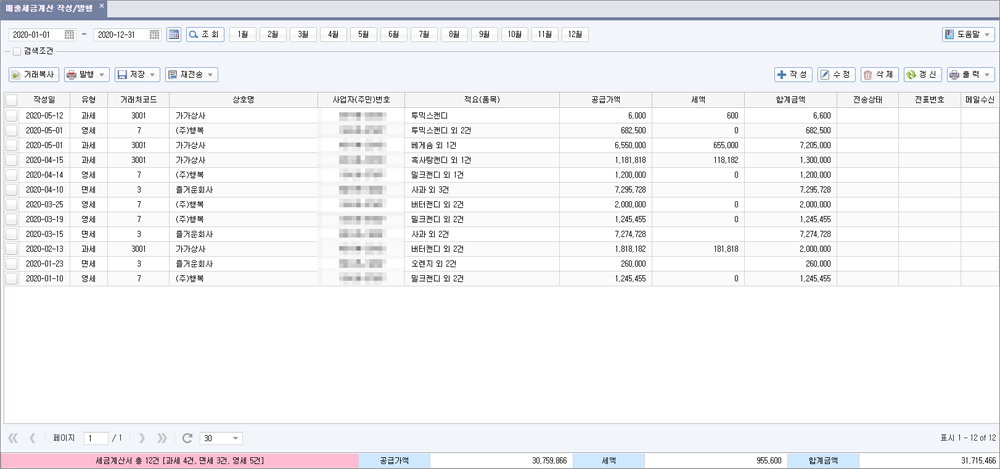 그리고 기업의 거래 내역을 모두 기록하고 있어서 예정신고와 확정신고 기간별로 분류해서 집계해줘요.