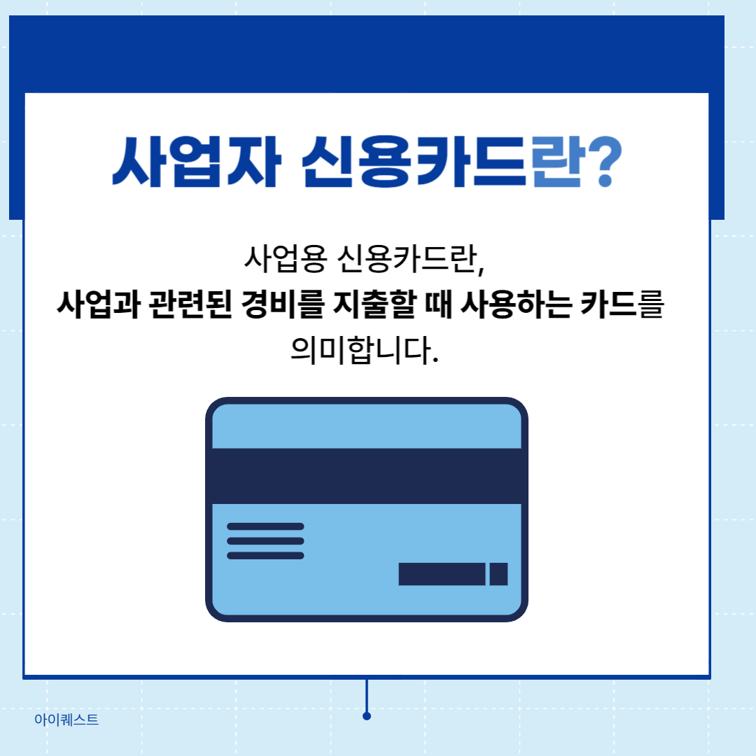 사업용 신용카드란 개인사업자가 사업과 관련된 경비를 지출할 때 사용하는 카드입니다. 개인사업자는 경비 지출 시 사업용으로 등록한 신용카드를 사용해야 합니다. 사업자는 사업과 관련하여 매입한 부가가치세액을 공제받을 수 있고, 매입세액을 공제받기 위해서는 세금계산서나 신용카드 매출전표 등의 증빙을 수취 및 관리해야 하기 때문입니다.