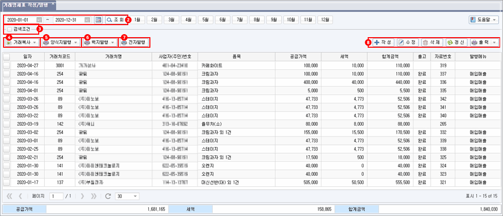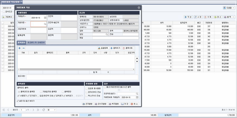 그리고 [얼마에요 ERP]로 발행한 거래명세표는 시스템에 저장되어 필요할 때마다 다시 조회하거나 재발행하면서 관리할 수 있습니다.