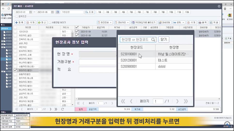 건설업이라면 당연히 현장별 구분이 되어 있는 회계 프로그램을 도입하여,