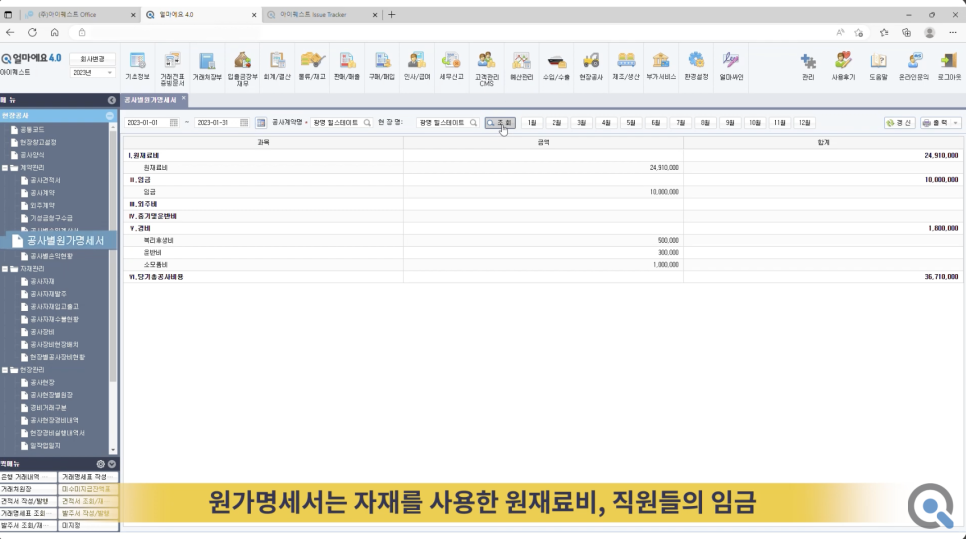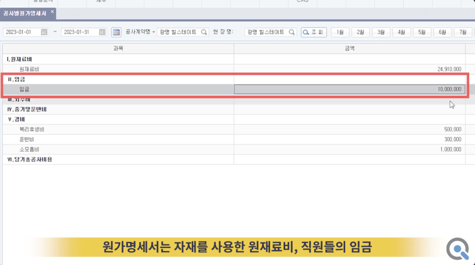 원가명세서 = 공사 원가 관리