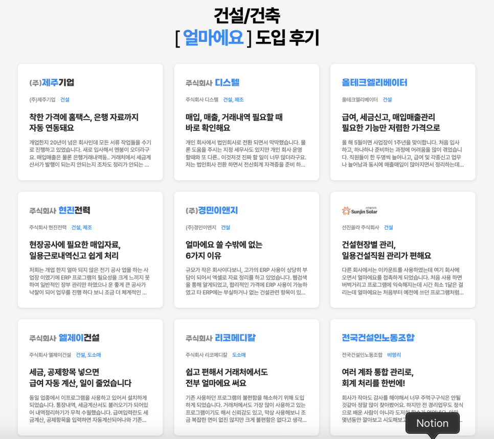 아래 배너 클릭하면 [얼마에요ERP] 고객사 후기를 만나볼 수 있어요.