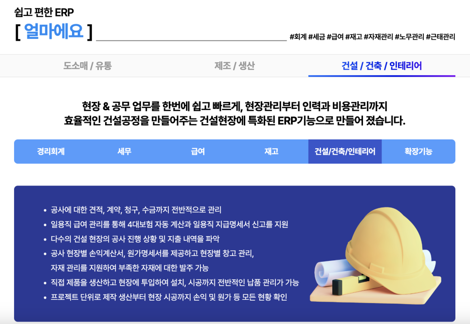 [얼마에요ERP]로 건설현장에서 필요한 매입자료와 근로내역신고, 일용직 관리를 편하게 할 수 있어서 좋았어요.