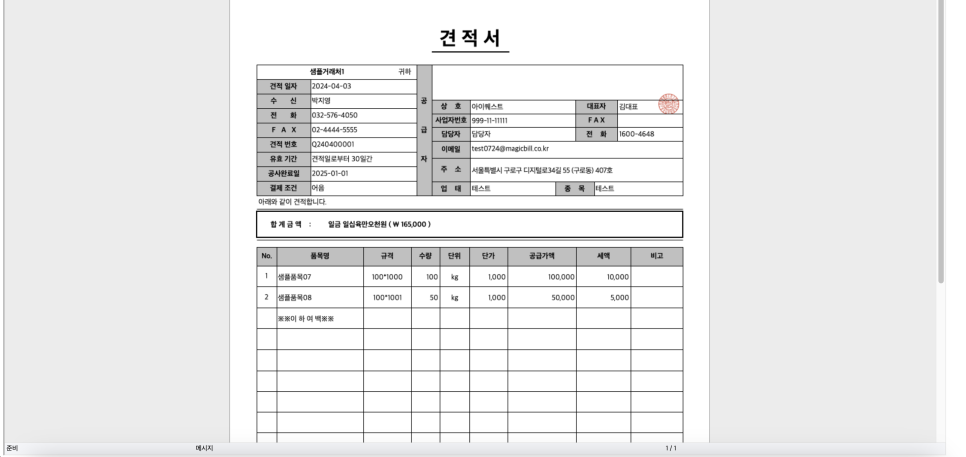 정식으로 계약을 체결하기 전 고객이 공급처에 견적서를 요청하면 공급처가 구체적인 견적 사항을 작성하여 고객에게 전달합니다. 견적서 검토 후 협의가 이뤄지면 그다음에 계약서를 작성하죠.