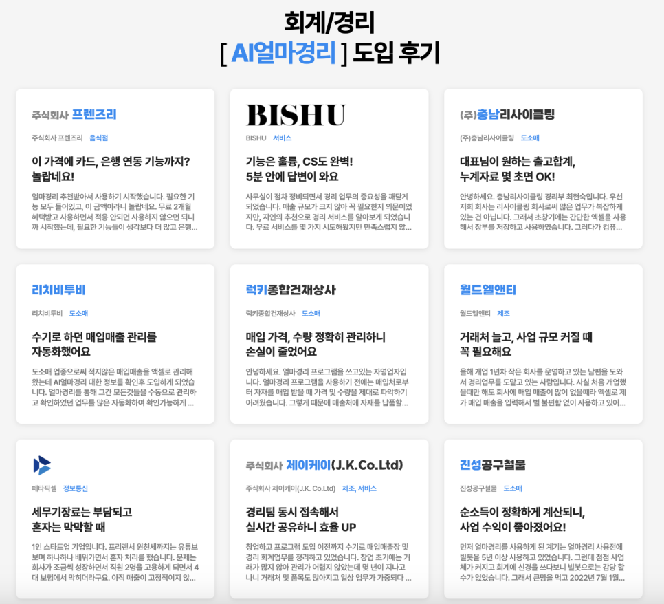 [AI얼마경리] 고객 후기