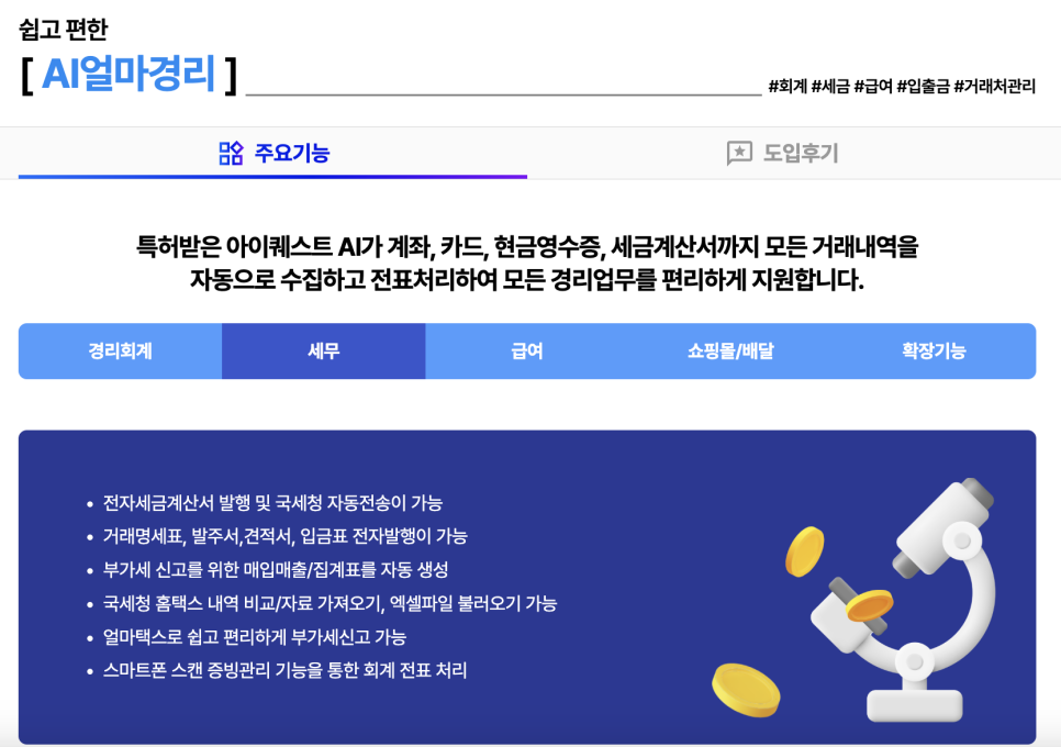 어렵고 번거로운 회계 업무를 더 효율적으로 운영할 수 있게 도와줄 든든한 파트너를 원한다면 지금 바로 [AI얼마경리]를 꼭 고려해보세요. 여러분의 사업 운영을 한층 더 스마트하게 만들어드리겠습니다.