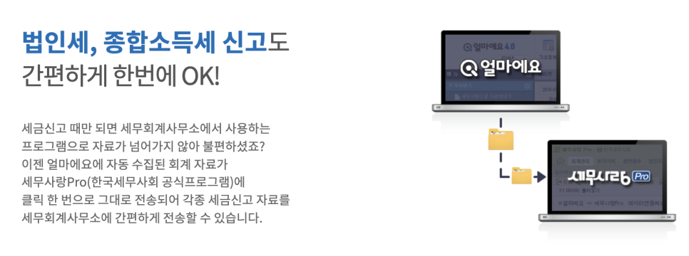 ‘세무사랑Pro’ 프로그램과도 연동되어 있어, 세무사에게 관련 자료들을 간편하게 전송할 수 있어 세금 신고에 소요되는 시간을 크게 줄일 수 있어요.