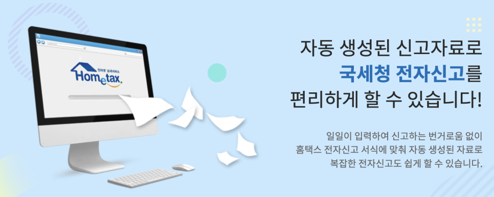 ‘세무사랑Pro’ 프로그램과도 연동되어 있어, 세무사에게 관련 자료들을 간편하게 전송할 수 있어 세금 신고에 소요되는 시간을 크게 줄일 수 있어요.