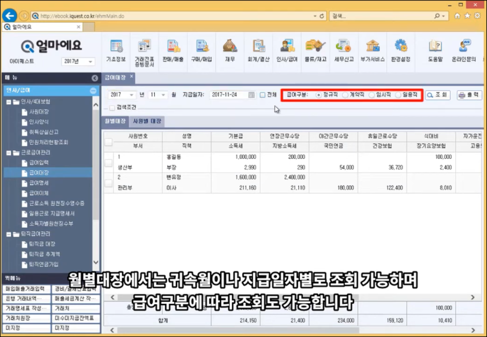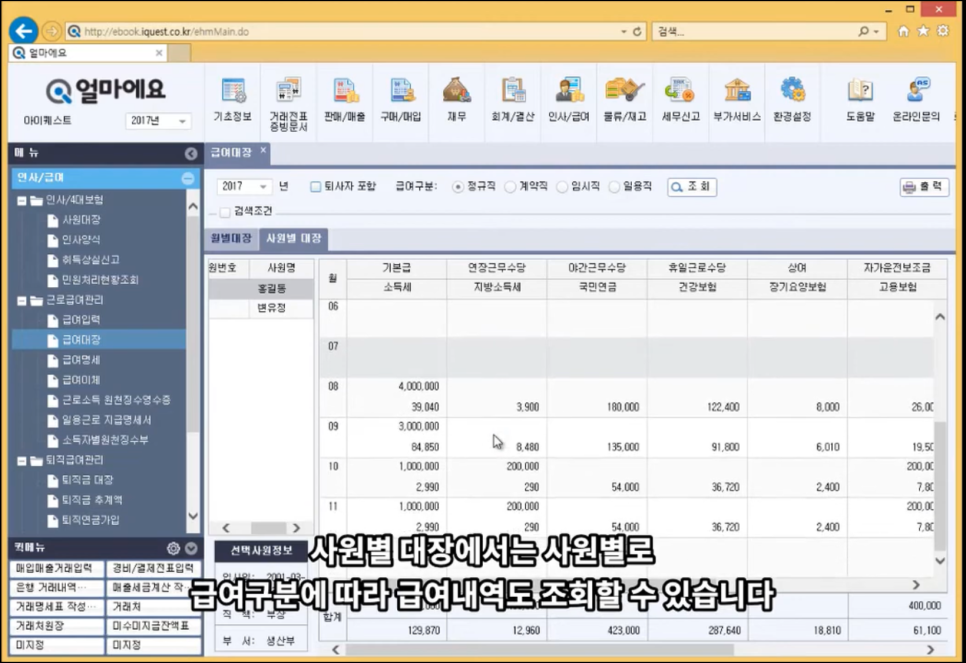 얼마에요ERP에는 급여관리 프로그램에 필요한 모든 기능들이 준비되어 있습니다.