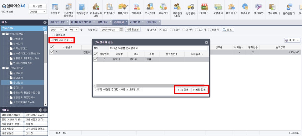 얼마에요ERP에서 급여명세서 발송하는 방법