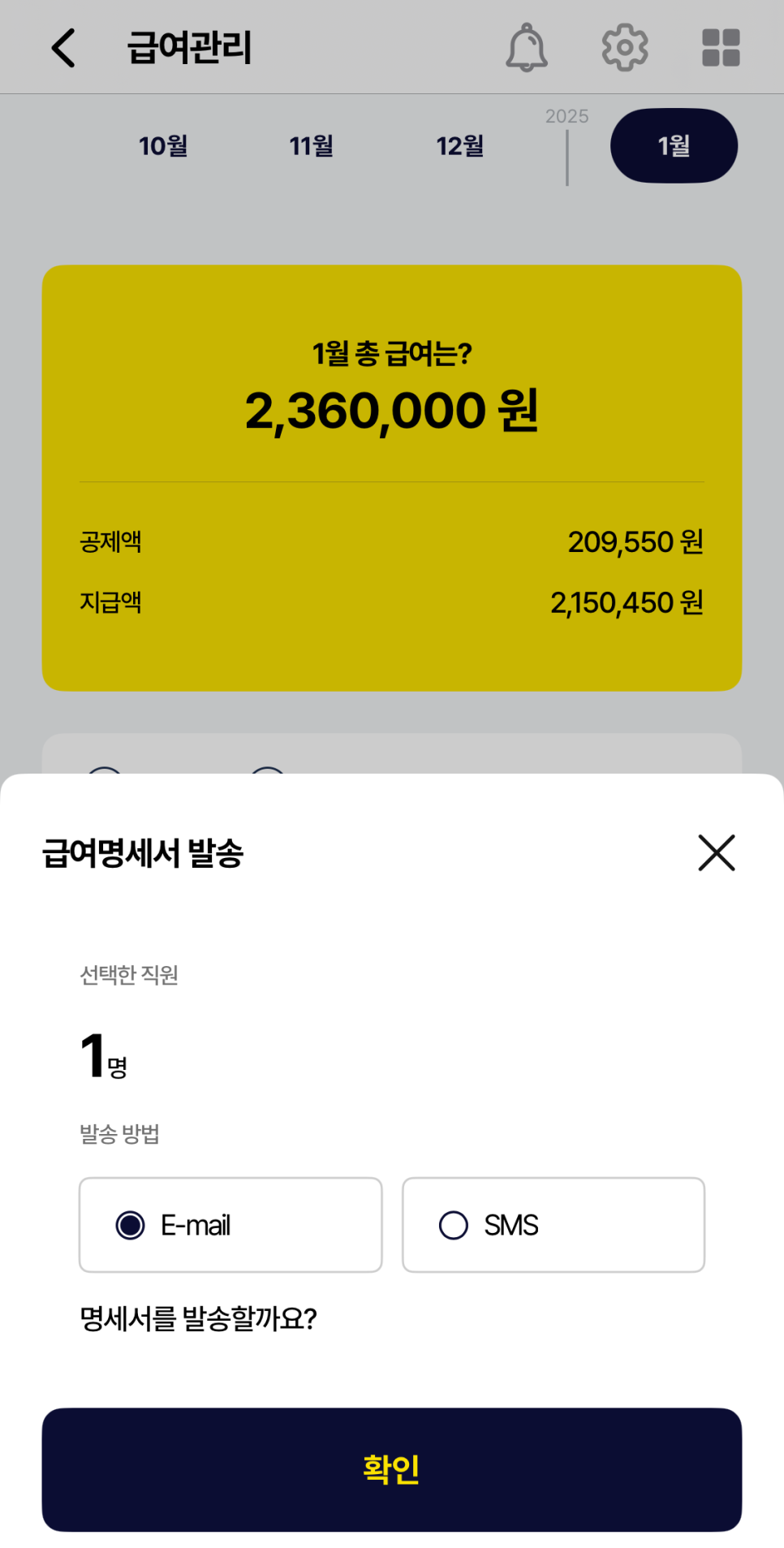 급여명세서 발송 : 2021년부터 근로기준법에 따라 모든 사업장의 급여명세서 발급이 의무화되었습니다. 얼마 앱 내에서는 바로 급여명세서 발송이 가능합니다.