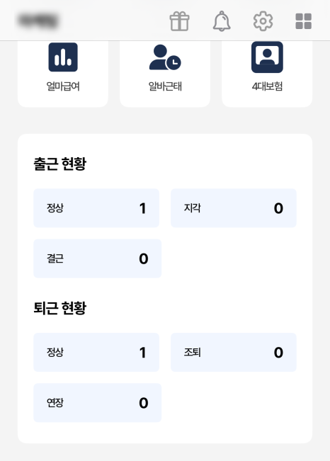 현재 상황 대시보드 : 월별 총 급여 지출 내역, 출퇴근한 직원 현황 등을 빠르게 확인할 수 있습니다.
