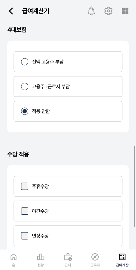 - 법정수당 자동 계산 (주휴수당, 연차수당, 야간수당 등)