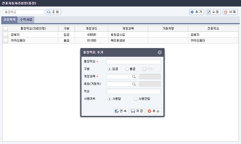 비영리법인⋅단체 전문 ERP [얼마에요 비영리] 기부금 자동이체 등록