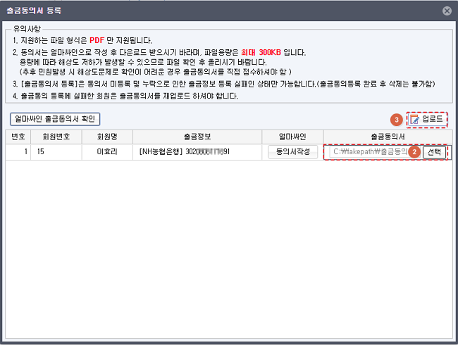 - 계좌 정보 및 자동이체 동의 문구