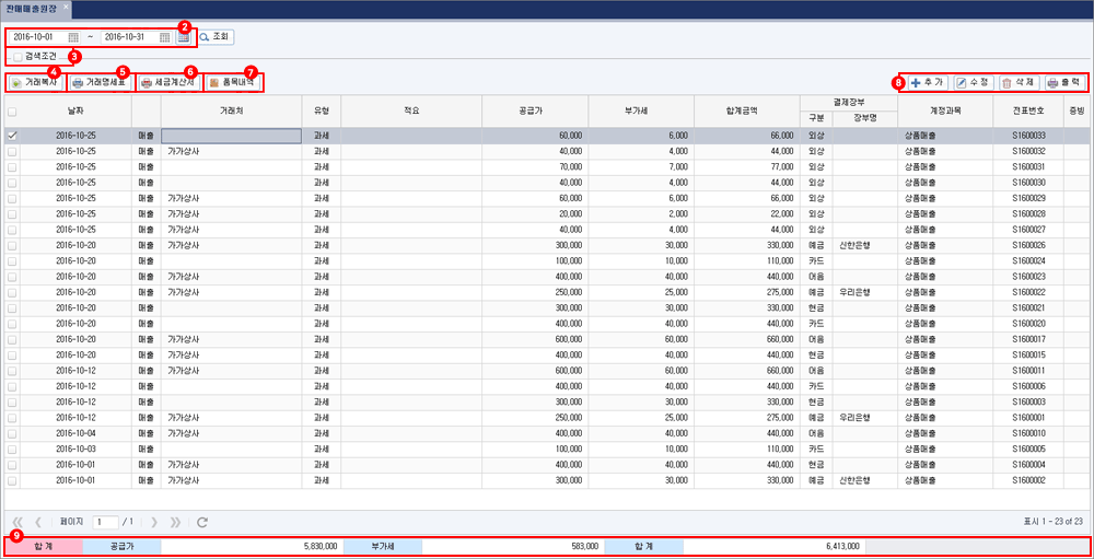 세금 신고 기간이 되면 매출 내역을 집계해야 합니다. 도매업은 대량 주문으로 거래하는 경우가 많아 매출 규모가 상당해서 계약 금액과 실제 매출 금액에 차이가 없는지 확인해야 합니다.