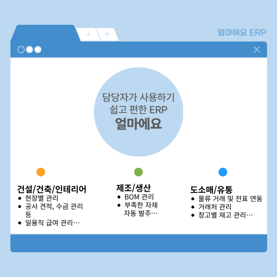 담당자가 사용하기 쉽고 편한 ERP, 얼마에요로 업무 효율성을 높여 본연의 업무에 집중해 보세요!