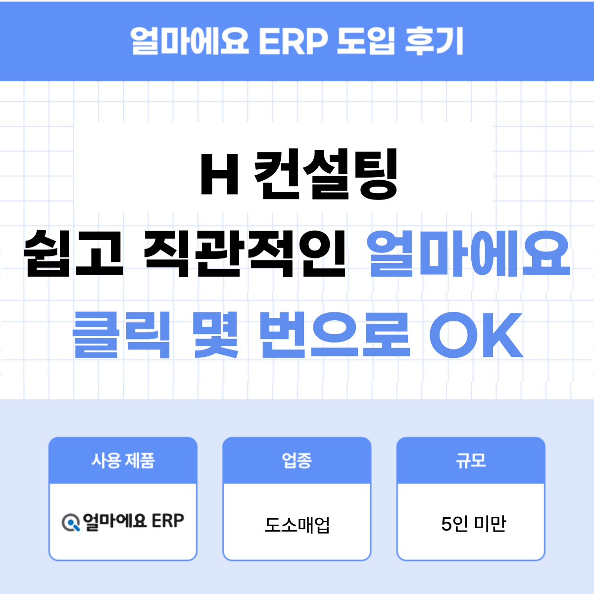 H 컨설팅에서 얼마에요 ERP를 사용 중인 대표님은 직접 경험한 소감을 아래와 같이 들려주셨습니다.