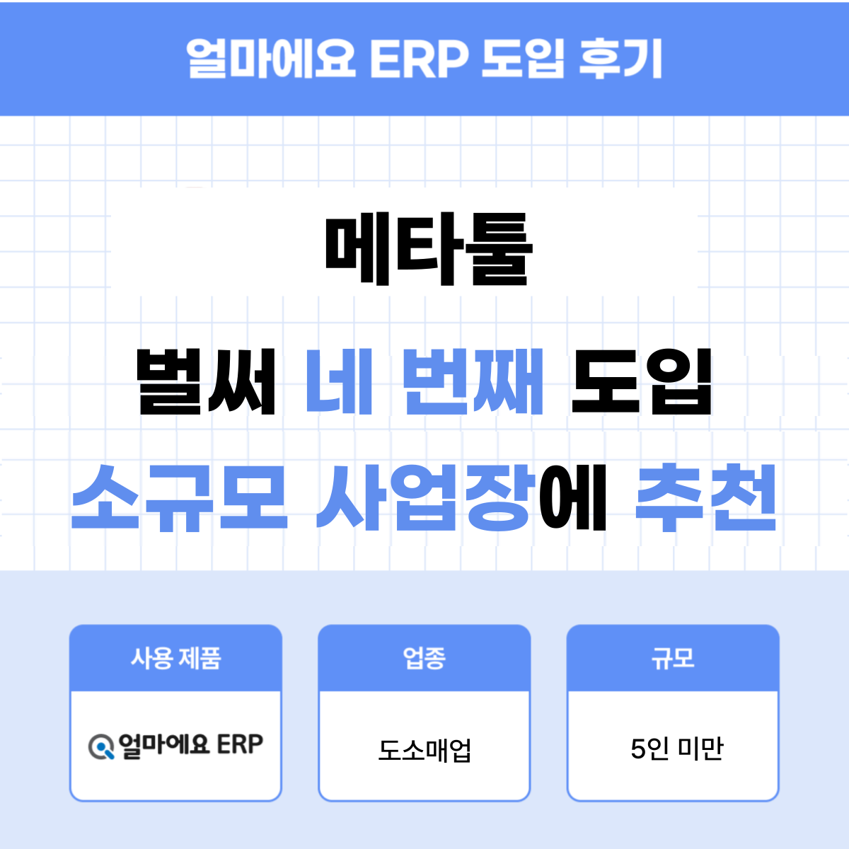 | [얼마에요 ERP 도입 후기] 매입매출·재고·자금관리까지 해결! 실사용자 체감 변화 공개 (2) | 2025.06.27 |