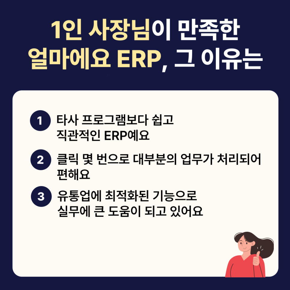 쉽고 직관적인 ERP로 유통업 관리까지 한 번에! 1인 사업자 사장님도 만족해요