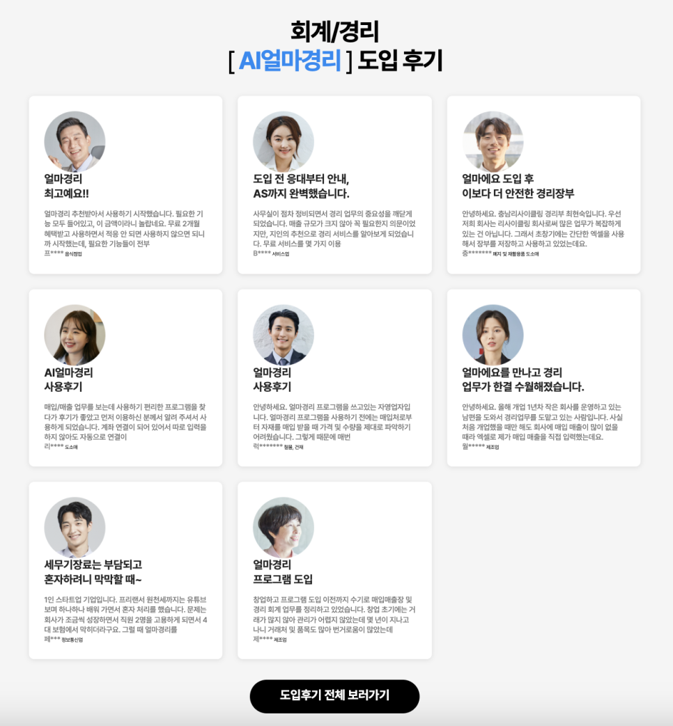 신규 창업자의 경우 [AI얼마경리] 6개월 무료 지원 혜택도 받을 수 있으니, 지금 바로 홈페이지를 방문해서 부담 없이 문의 주시기를 바랍니다.