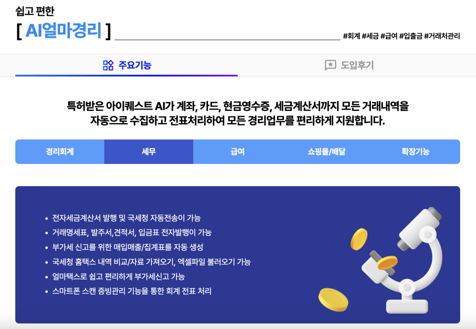 아이퀘스트 AI 경리회계 솔루션 [AI얼마경리]