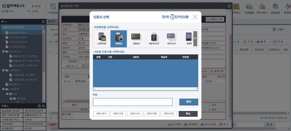 3. 매출 등록 시 프로그램 내에서 바로 세금계산서 발행이 가능합니다.