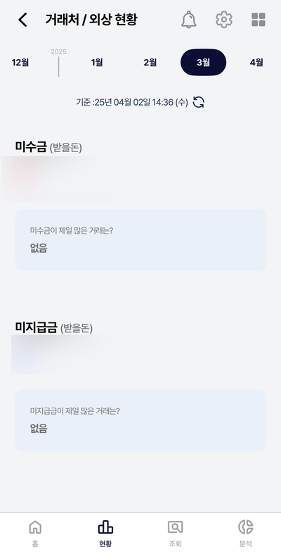 3. 거래처별 미수금, 미지급금 현황까지 자동으로 정리해 줍니다.