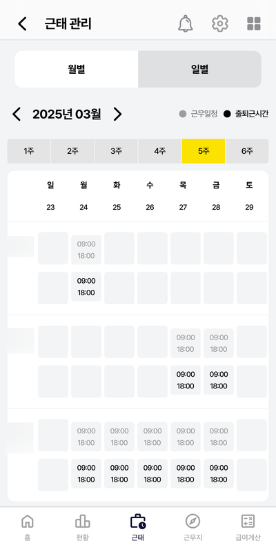 복잡한 근무 스케줄을 표로 직관적으로 확인할 수 있으며, 출퇴근 현황을 토대로 급여 계산을 도와줍니다.