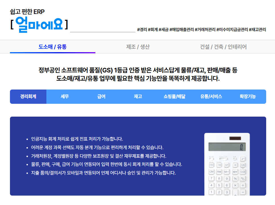 바로 도소매/유통 매출관리에 최적화된 얼마에요 ERP입니다.