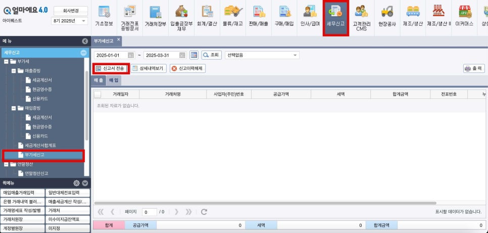 아이퀘스트 ERP 솔루션 [얼마에요ERP]로 부가세 신고 파일 만들기