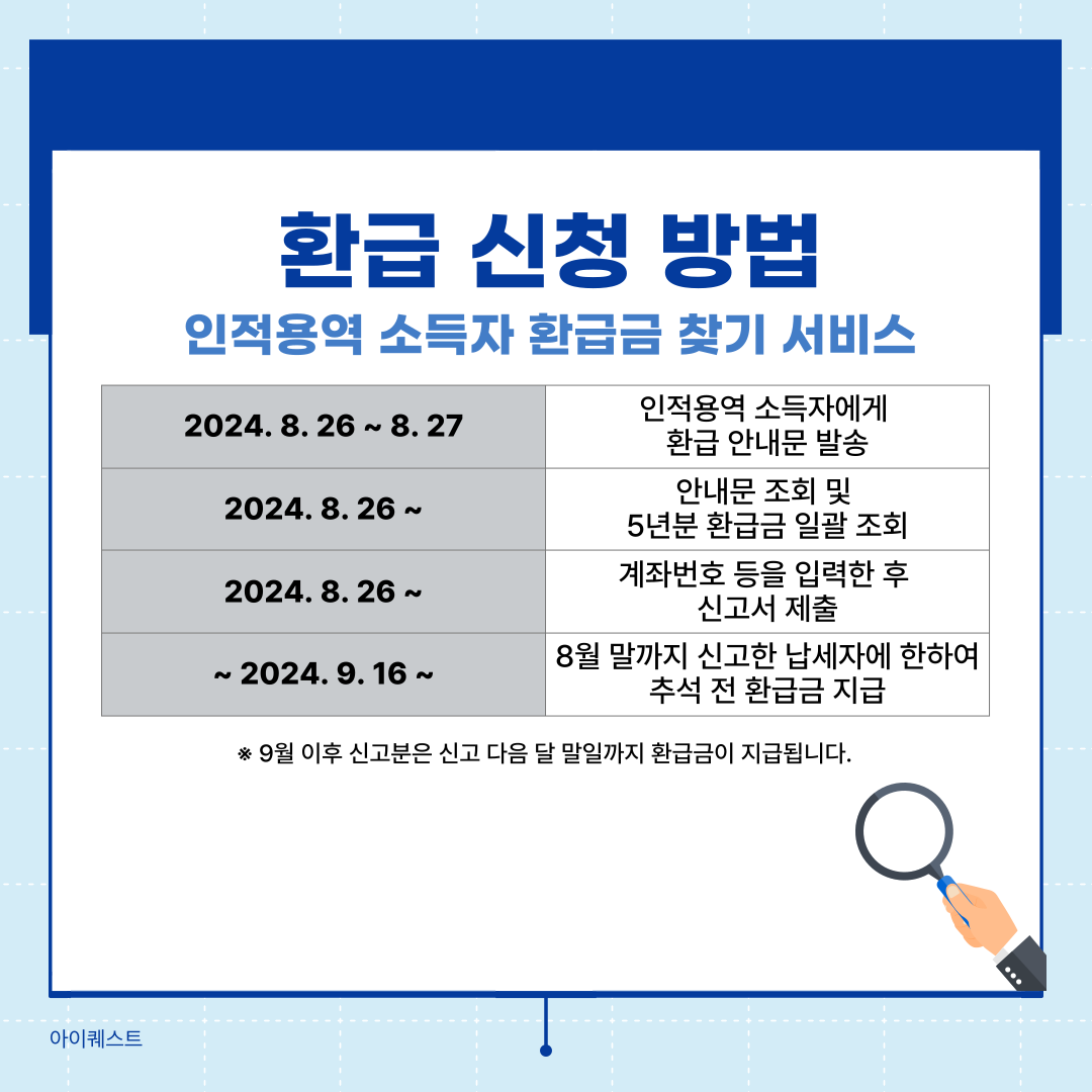 오늘은 인적용역 소득자 소득세 환급금 찾기에 대해 안내드리겠습니다.