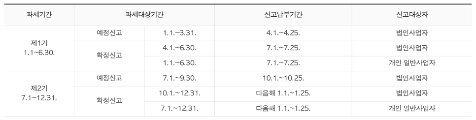 - 제1기(당해 1월~3월분) : 4월 1일~4월 25일