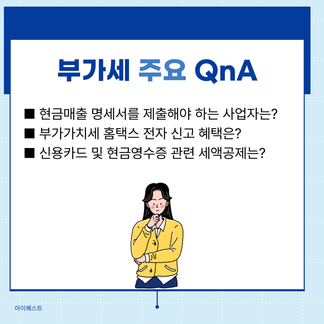 오늘은 부가세 신고 관련 주요 QnA에 대해 안내드리겠습니다.