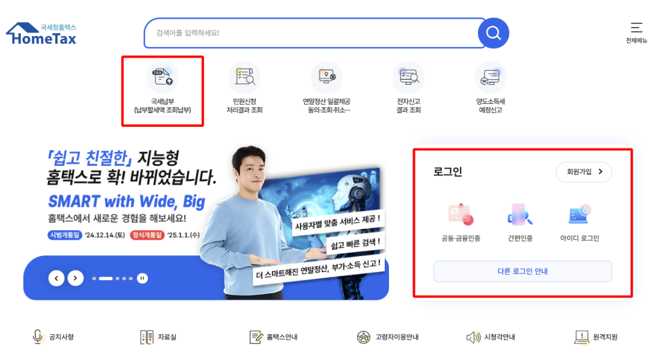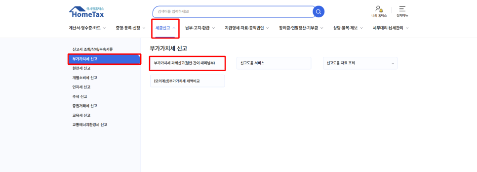 홈택스 > 로그인 후 > 국세납부 > 부가가치세 신고