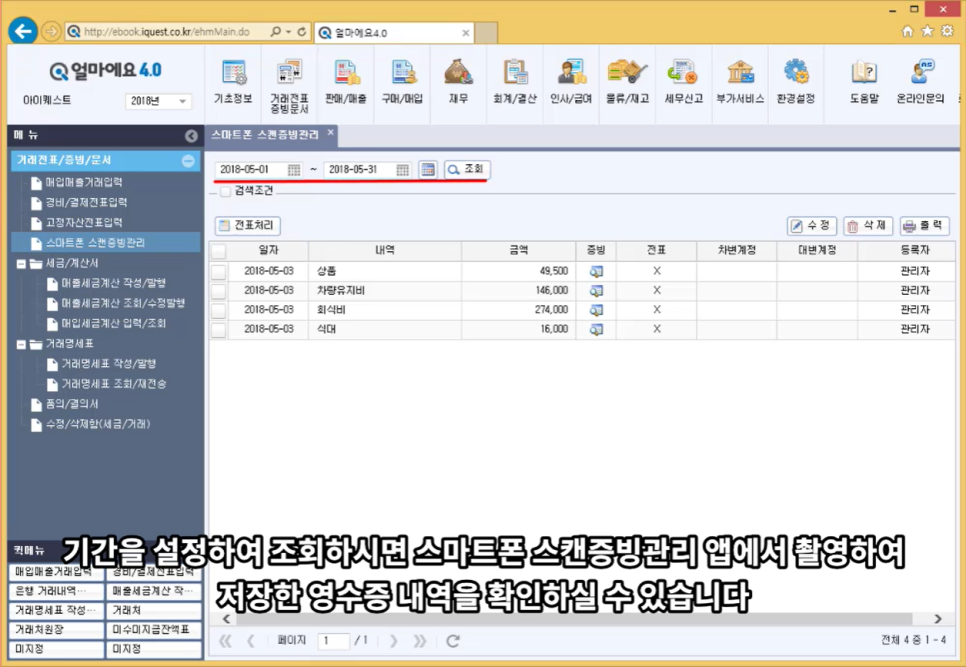 - 인공지능이 세금계산서, 신용카드, 현금영수증 내역을 자동 불러와 전표 입력을 지원합니다.