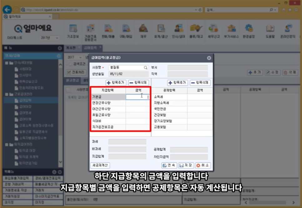 - 최신 세법을 반영해 자동으로 4대보험이 계산되며, 복사 기능으로 간편하게 급여 입력이 가능합니다.