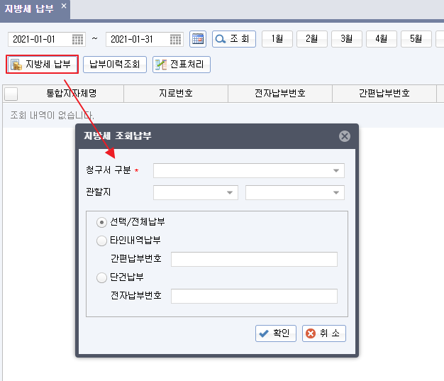 일부 ERP 프로그램은 자체적으로 공과금을 신고할 수 있는 기능을 제공하고 있습니다. (전자)고지서와 지로에 적혀있는 전자 납부 번호를 ERP 프로그램에 입력하면 공과금을 납부할 수 있어요.