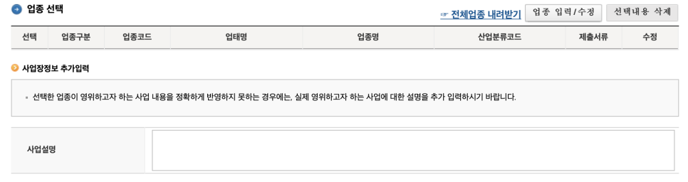 이럴 때는 현재 사업을 기준으로 업종코드를 입력하는 게 좋습니다. 그리고 나중에 사업 방식과 업종이 변경되면 홈택스에서 쉽게 업종코드를 정정할 수 있어서 너무 걱정하지 않으셔도 됩니다.