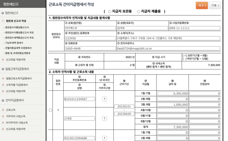 간이지급명세서를 간단하게 설명하자면, 원천징수의무자가 지급한 근로소득/사업소득 내역을 기재한 문서입니다.