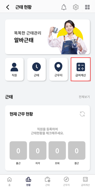STEP 02. ‘알바 근태’ > ‘급여 계산’ 접속