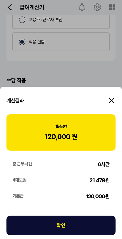 STEP 05. 급여 시간, 4대 보험, 수당 여부에 맞춰 자동으로 예상 급여가 계산됩니다.
