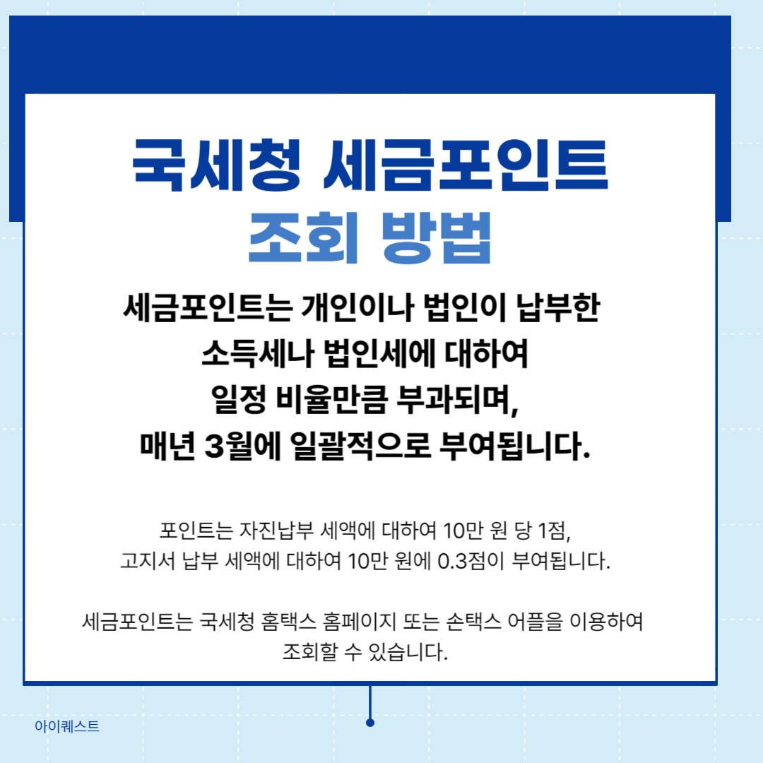 오늘은 세금포인트 조회방법 및 혜택에 대해 안내드리겠습니다.