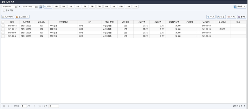 수입 P/O 관리