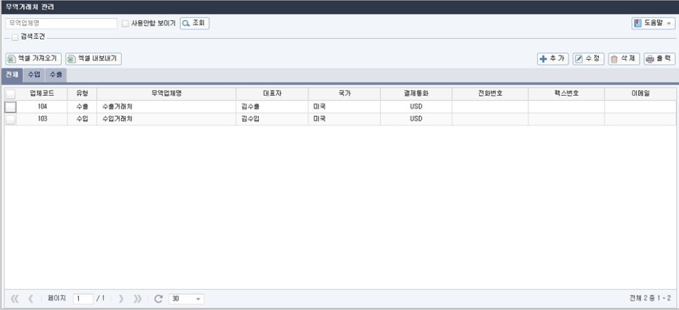 2. 수입 거래처 관리