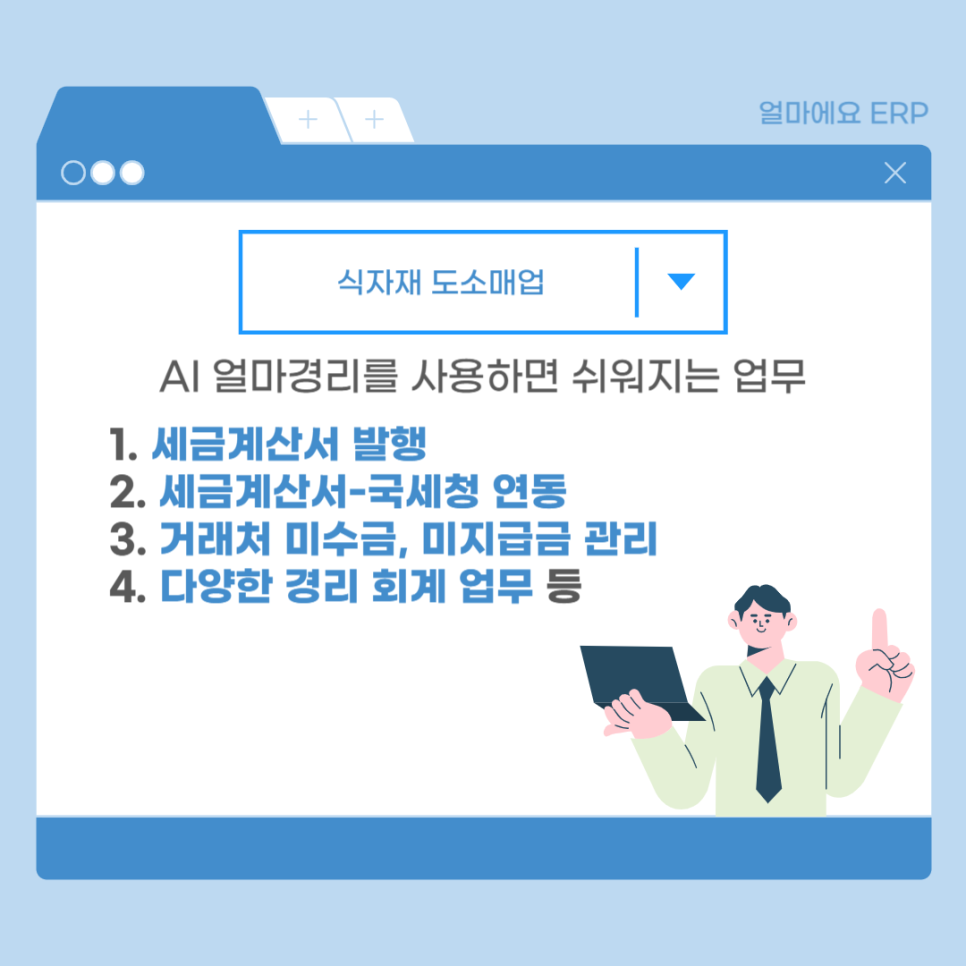 식자재 도소매업에서 사용 하기 쉽고 편한 회계 프로그램, AI 얼마경리!