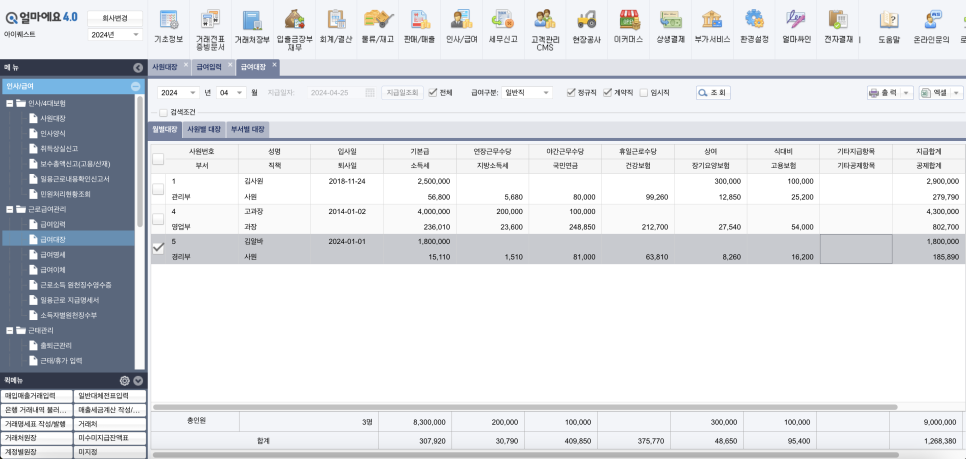 3. '경리회계 솔루션'으로 급여대장을 정확하게 작성할 수 있어요